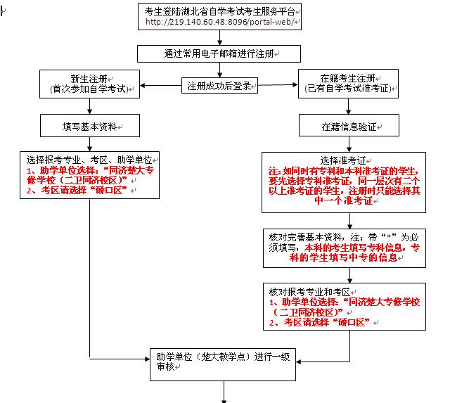 自学考试网上注册与现场确认流程图